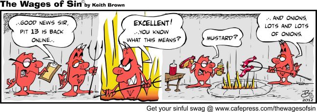 During that time he began experimenting with ideas for comic strips and panels. In 2011 the though of a comic strip about the devil and his assistant took shape. By 2012 The Wages of Sin became his focus.