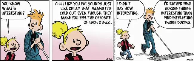 Frazz lives the good life: Everything is potentially interesting in his world, though he missed a chance to bring up a very old joke about the Mexican weather report: “Chili today and hot tamale,” which has the advantage of being ethnic without being racist.