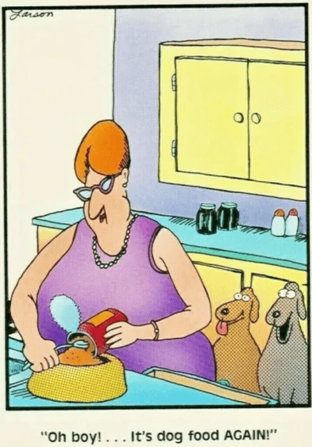 I don’t know that dogs today eat better than we did, but I think there’s a major dietary bond separating kids and dogs, because while some people cook for their dogs, a lot of people just give them the same kibble each day.