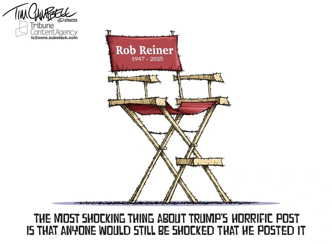 Skip to commentsI had intended to run a collection of Reiner/Trump cartoons to show the depth of rejection Trump’s insane post had sparked, but Campbell sums it up. There’s not much more to be said, and the people who are shocked are shocked and the people who cannot be shocked are not.