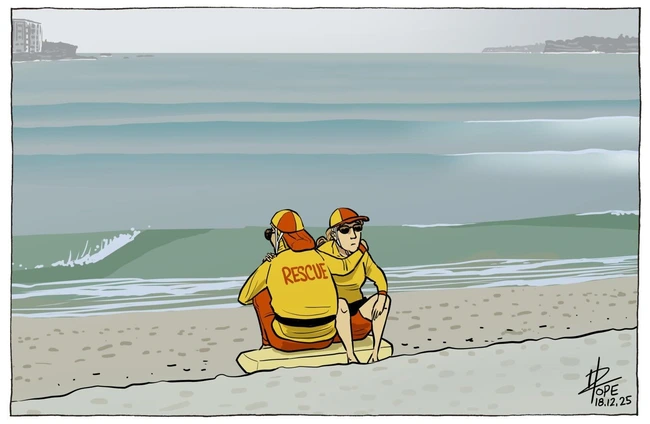 Dave Pope offers this commentary on the Bondi Beach killings and, while it seems aimed at the lifeguards (who did great work in the crisis), it touches everyone who feels helpless, there and around the world.