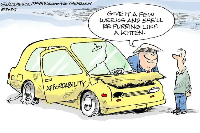 By contrast, Summers uses a familiar symbol of dishonest dealing, the used car dealer who unloads lemons on unsuspecting customers. He puts the “affordability” label on that banged-up car and thus cites what everyone knows, which is that the cost of living is not coming down.