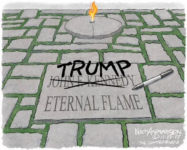 Anderson suggests one more opportunity for Trump to add his name to a national landmark, and the only thing more inappropriate might be for Dear Leader to demand his name be entered on the Vietnam wall.