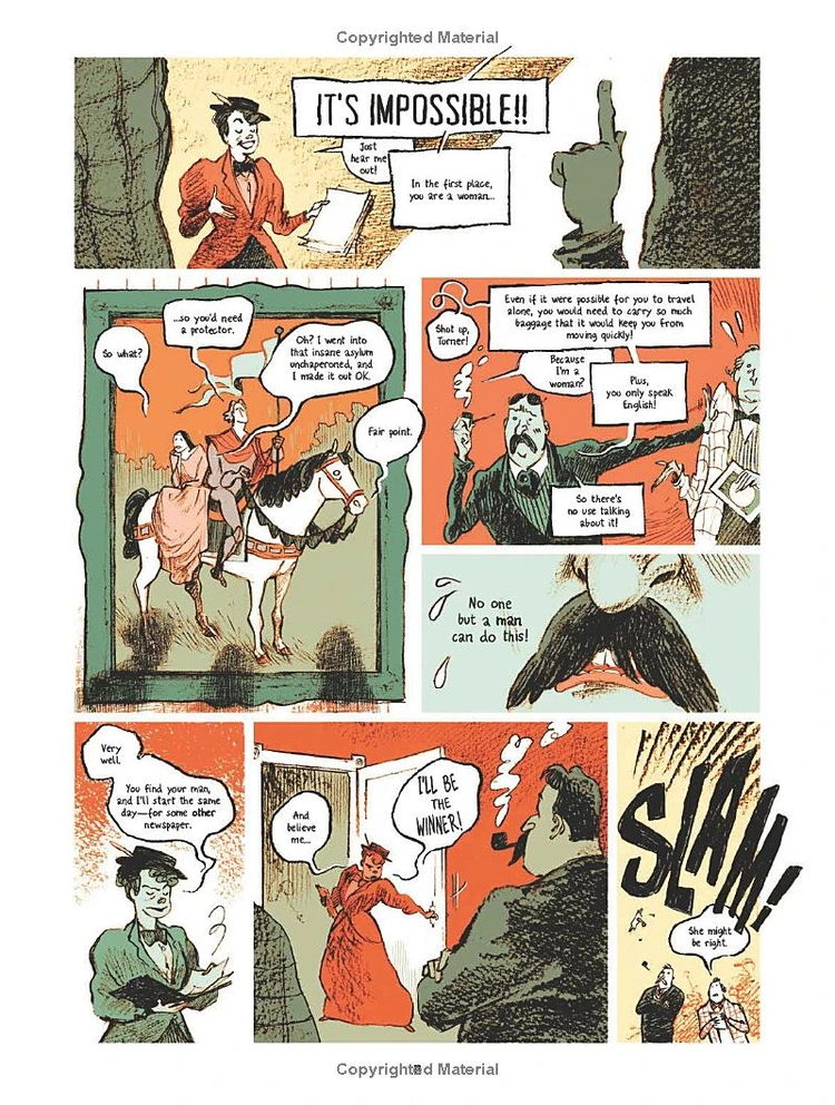 And if the graphic novel inspires the reader, both Bly’s account and Bisland’s are available to let you know how they described their adventures.