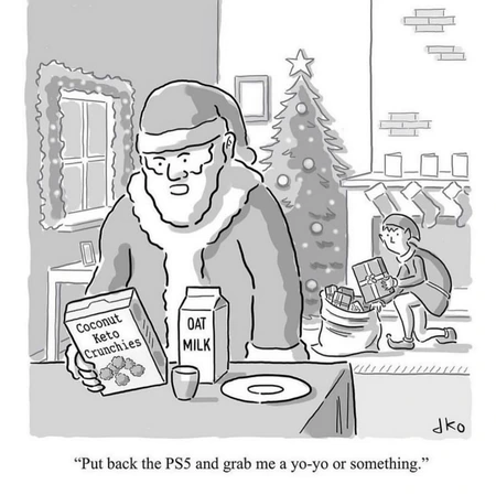 I’m not all warm and fuzzy, though, and I got a laugh out of Ostow’s cartoon. But maybe it’s because I am warm and fuzzy, because I like traditions and I’m pretty sure your body will recover from the joyous excesses of the season.