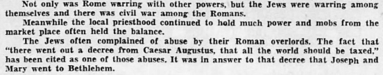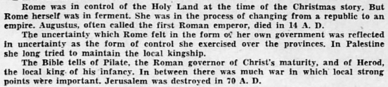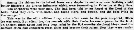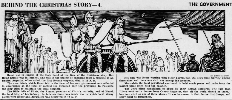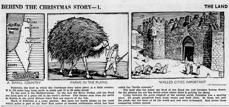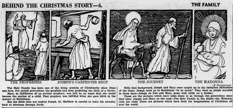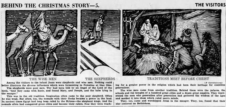 Skip to commentsIn 1952, a year after Associated Press Newsfeatures delivered the six part The Story of Santa Claus to newspapers, they brought out the six part Behind the Christmas Story. Again drawn by AP art director Ed Gunder and probably (there is no proof) written by AP correspondent Sherry Bowen who had written AP’s The Story of Easter earlier that same year.