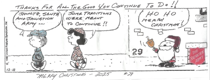 For the 29th year in a row The Salvation Army of the Black Hills has been gifted gold coins. Of late at least one of the gold coins has been wrapped in an altered Peanuts comic strip.