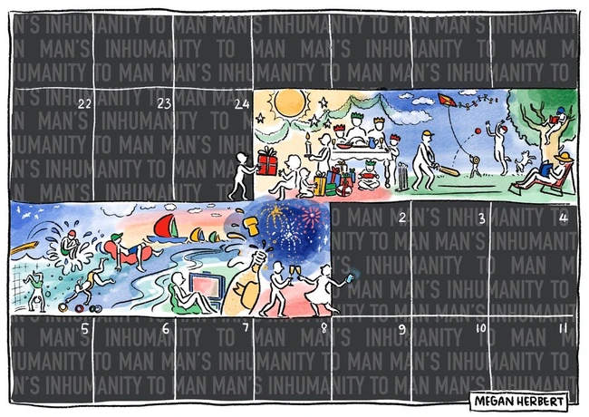 We started with one Australian cartoonist’s gratitude for a few days off, so we’ll close with another Aussie’s more cold-eyed view of the year’s end.