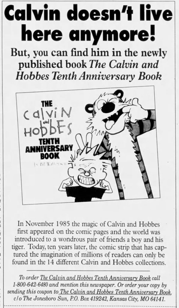 Andrews McMeel Publishing promoted the newest Calvin and Hobbes book that last weekend of 1995.