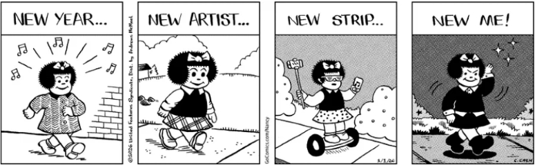 Caroline Cash took on the Nancy comic strip on Thursday January 1, 2026 and in showing Nancy through the ages, or artists if you prefer, nailed her opening show.