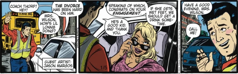 This week’s (fortnight’s?) guest artist taking over for Rachell Merrill on Gil Thorp is Jason Margos.