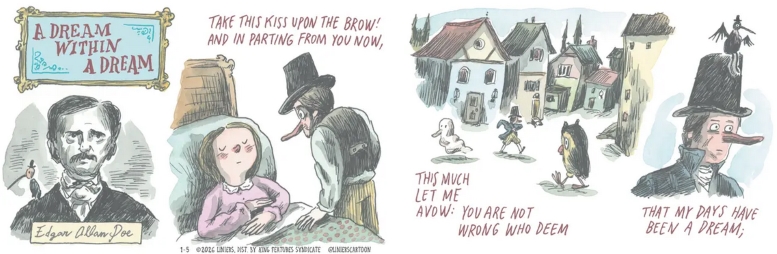 I expect to be as thoroughly enamored with his adaptation of Edgar Allan Poe’s “A Dream Within a Dream” this week in Macanudo.