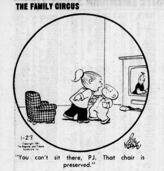 In the comments section of Wednesday’s The Family Circus the question was asked, “Why does that woman have a TV antenna on her head?” I was somewhat perplexed when no one answered the question.
