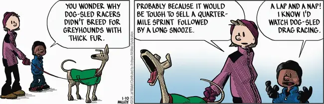 One of my dog’s besties is a greyhound and it is fun to watch him take off around the park. The other dogs have given up chasing him, though some set up to try to cut him off. But Ms. Plainwell and Caulfield are right: They’re sprinters, not long-distance runners.