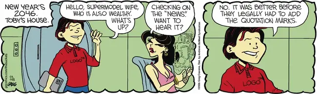 The Buckets had a fantasy sequence in which Toby imagines his life 20 years hence, and managed to slip in this zinger. I don’t know which is less likely, that he’ll end up with a supermodel wife or that there will come a time when the news will have to admit how far they’ve drifted from journalism, but both seem like the sort of idealistic dreamworld a kid might envision.