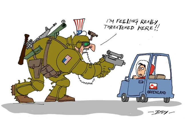 But Dear Leader has noticed that Greenland is near Russia if you hold the globe right, and as he is building a wall to keep everyone south of the Rio Grande from coming here, he’s now trying to find a way to keep Europeans and Asians from walking across the North Pole right into our 51st state of Canada.