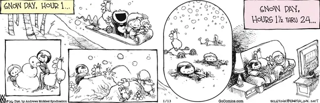 Though still on the topic of education, I remember snow days, and Wiley’s right, though back when I was a wee sprat there wasn’t a lot on daytime TV, so after we had enough snow, we mostly drank hot chocolate and played Monopoly. But we did watch Beat the Clock to see if anyone could get a tennis ball to roll up the ramp and stop on the top of the box.