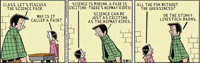 As far as science fairs go, my biggest memory is senior year, when I gave a pal a six-pak of Bud to add my name to his project. Can’t remember if we won a ribbon. Science fair ribbons, however, generally go to the kids whose parents did the best packaging job on the display, preferably for projects that Do Something Colorful rather than just sitting there demonstrating a legitimate scientific principle.