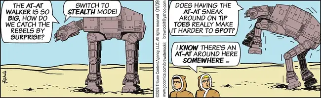 Here you had a civilization capable not only of interstellar flight at light speed but of land cruisers that zipped around like hydroplanes, and they were employing these clumsy, slow, top-heavy things available at Toys-R-Us or wherever you buy the things your kids are begging for.
