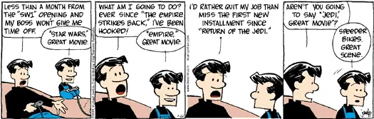 And, yeah, we went back for the next toy commercial, too, which is how we wound up with pieces of the Ewok Village strewn from one end of the house to the other. The speeder bikes scene was, indeed, cool, but it was more fun to play Tron down at the arcade when they were having one of those $5 unlimited-play days.