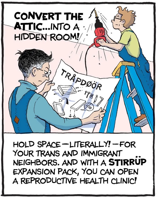 Last Sunday cartoonist Alison Bechdel drew “8 Things You Need to Start Your Own Commune” as eight panels for The New York Times opinion section (or here).