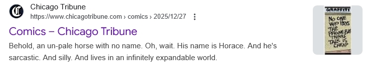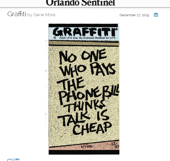 Update: The Orlando Sentinel GoComics portal confirms that December 27, 2025 was the last Graffiti panel that appeared on the GoComics site. Did that panel appear in any newspaper?