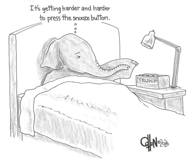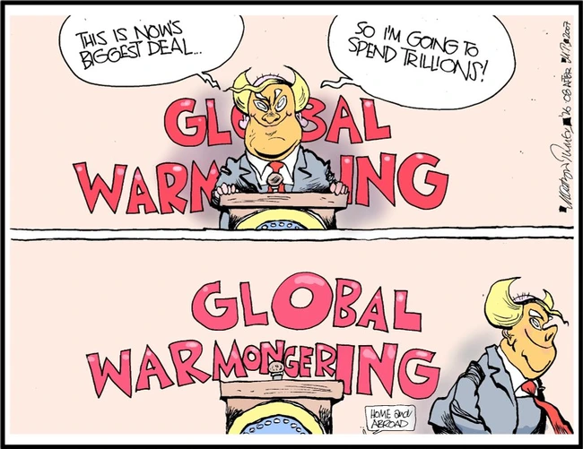 Martyn Turner manages to get a laugh out of Trump’s bizarre set of priorities, in which he ignores an obvious, unquestioned threat and, instead, invents unnecessary, pointless but deadly issues in its place. Hardly surprising, given the Irish appetite for dark humor, but hardly reassuring, either, because this is not just some nutcase with a podcast but a genuinely powerful world leader.