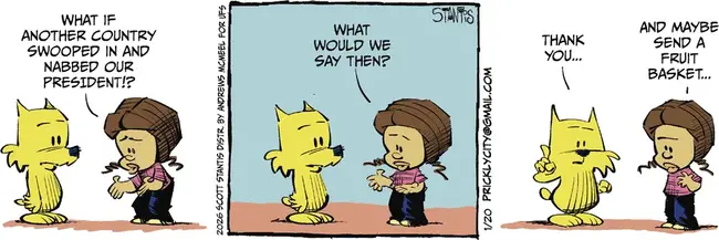 Skip to commentsOther cartoonists have suggested a “What would you say?” scenario over how Americans would be outraged if another country were to seize our president the way we grabbed Maduro, but Prickly City, as a strip, has the real estate to ask the question and propose a possible answer.