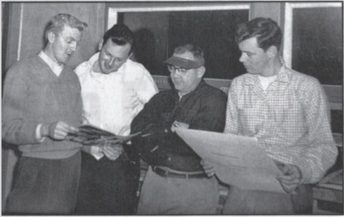 The Powell Studio, c. 1951: Marty Epp, George Siefringer, Bob Powell, and Howard Nostrand (Credit: Seth Powell).