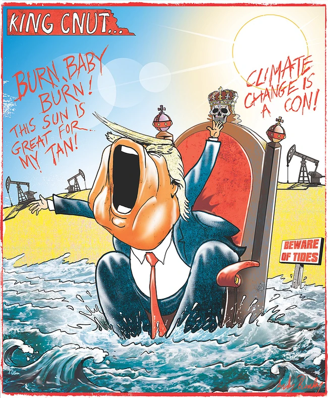 Canute was attempting to prove to his courtiers that there were some things even the king could not accomplish, but it has come down, instead, as a prideful, futile gesture, and Dear Leader’s insistence that climate change doesn’t exist is indeed just that.