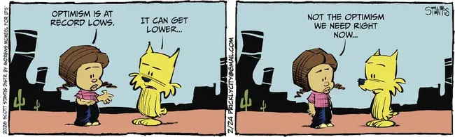 Sometimes pessimism is a cool hand, if it inspires questions and demands, and it’s also possible to be an optimist because you expect things to improve.