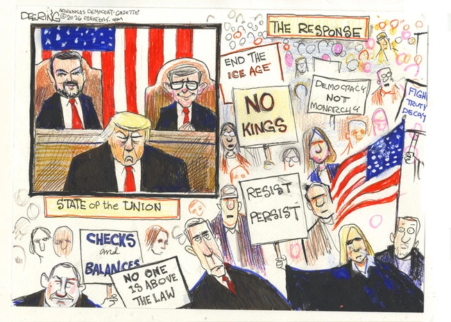 I’m more in line with Confucius than with Clay Bennett’s suggestion, and I hardly think a cartoonist who admonishes those in power so often and so sharply really believes this, though I’ll admit I’m sorely tempted to skip the Address and read the analysis the next day. And if that’s Bennett’s actual suggestion, I’ll withdraw my objection.
