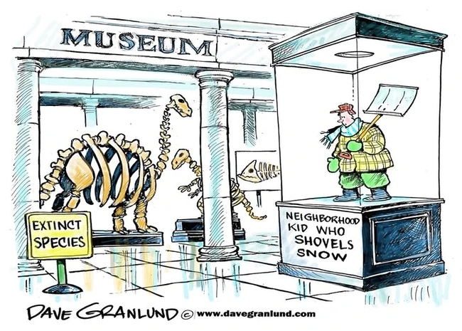 Granlund dropped this one before that Noreaster buried the East Coast this week, but he’s right that more kids used to make money going door-to-door offering to clear people’s sidewalks than you see now. I think that’s also true of kids who used to contract to mow lawns.