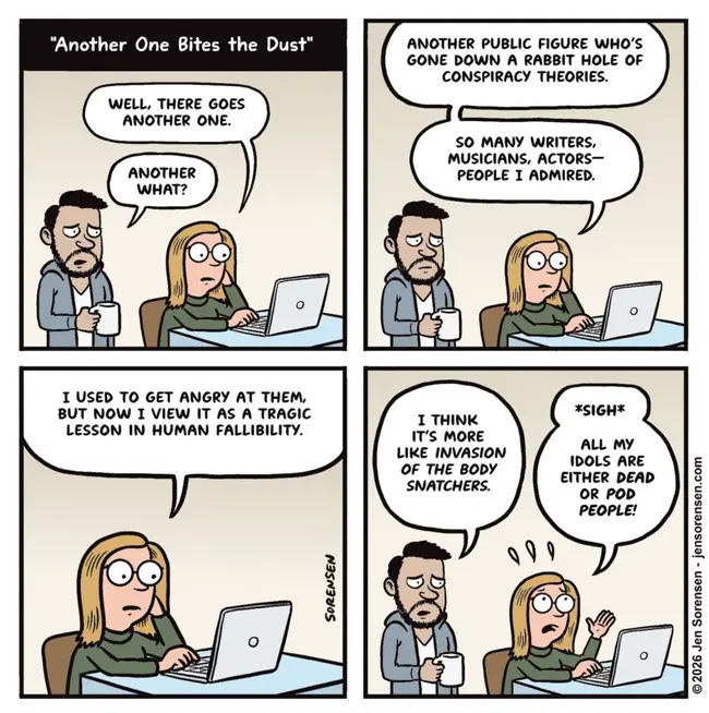 I’m sympathetic. During the pandemic, some of my favorite rock musicians revealed themselves to be utter nincompoops on the topics of masks and vaccines, and it’s hard to listen to their work without thinking “What a great solo. Too bad he’s an idiot.”