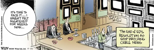 Wiley is right that some people prefer to be aggrieved, though he leaves it up to the reader to decide if the fellow gets aggrieved by the news itself or by the way cable news outlets present it.
