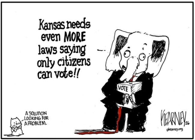 But Kearney notes that Kansas legislators find banning non-citizen voting an appealing solution despite there being no problem for it to solve.