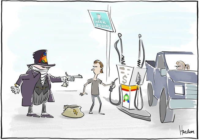 Gas prices have already risen in response to the closure of the Strait of Hormuz, through which passes about 20% of the world’s petroleum. It’s certainly true that this cut in supply has not yet been felt at the pumps, or even, yet, at the refineries, and both Hudson and Davies accuse the companies of profiteering.