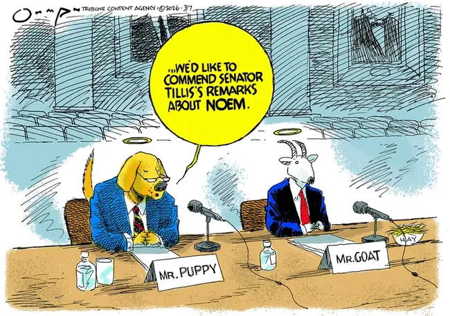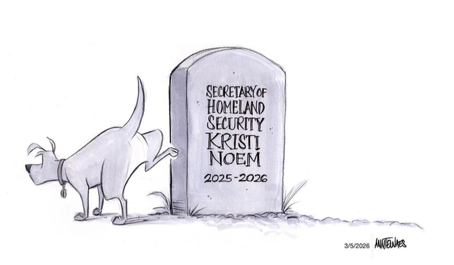 Skip to commentsKristi Noem’s sudden fall from grace called for some quick reactions from cartoonists and I think they acquitted themselves well as a group. Not every take was brilliant, but several were quite good, particularly from a cold start. I’m sure there will be some others landing in the next day or two, but you snooze, you lose, and with things coming at us so fast lately, you’ve got to be quick on the draw.