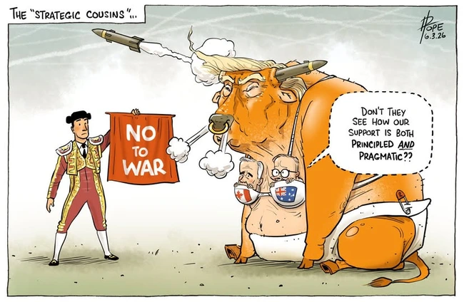Pope criticizes Canadian PM Mark Carney and Australian PM Anthony Albanese for their failure to stand up to the bull(y) the way Spanish PM Pedro Sanchez did, refusing to allow the US to use the jointly run bases at Morón and Rotafor to strike Iran, saying