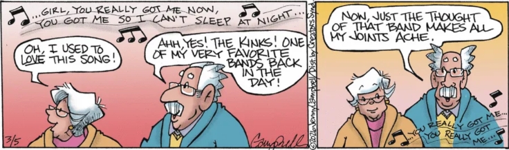 No way I can pass up noting The Kinks showing up in Jenny Campbell‘s comic strip, as they did yesterday.