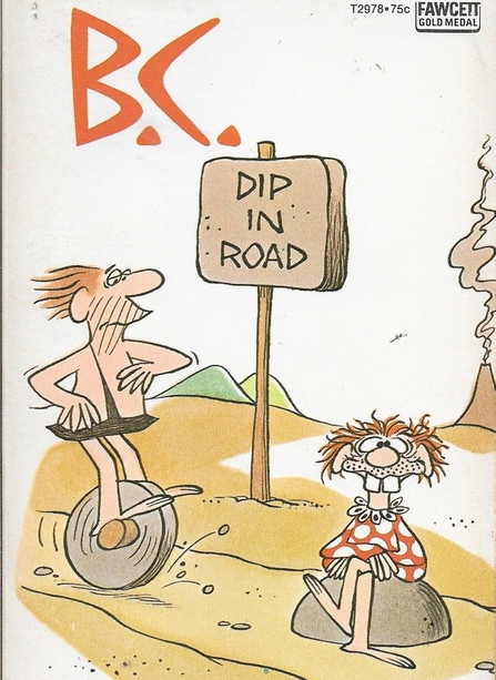 I have mentioned before that I am not a big fan of John MacPherson‘s comic art but I keep reading Close to Home because of his mostly hilarious gag writing. Today he failed me. Yes, comics “borrowing” from others is nothing new, but this is one of Johnny Hart’s most famous jokes. The famous February 9, 1970 B.C. was not only reworked into a comicback® cover but is available as a print.