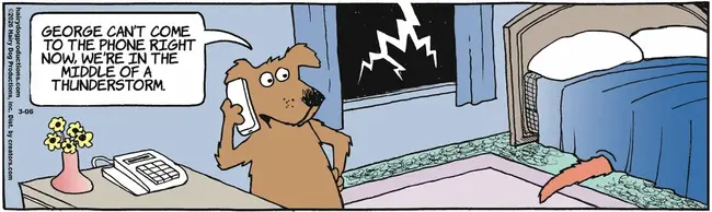 She’s got ferrets, and I have no idea how they respond to loud booms, but when we get thunder or fireworks, my dog just looks over at me to see if I’m freaking out and then follows suit. Of the dozen or so dogs I’ve had over the years, only one of them really hated thunder and fortunately he had the good sense to really hate it in the kitchen, which made it much easier to clean up.