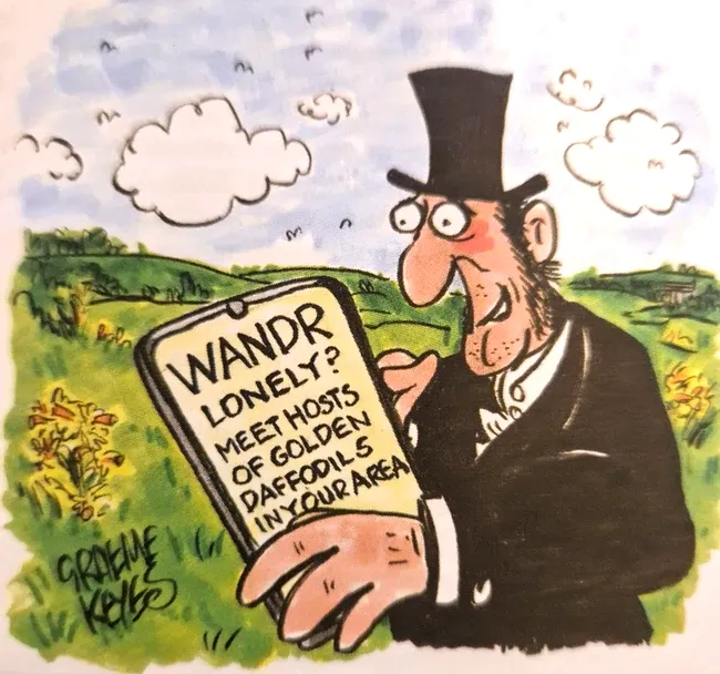 I’ve seen the field Wordsworth wrote of, but daffodils weren’t blooming at the moment. I’ve since read that you wouldn’t need a computer flower dating site to publicize the place and that sentimental tourists have been planting the wrong flowers there.