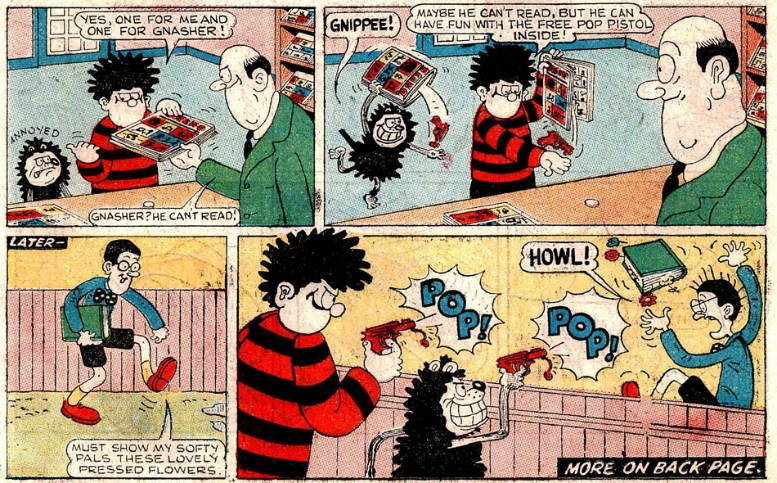 The comic has gone through several name changes since its launch. After 1970, Dennis’ friend Gnasher, who appeared two years after the strip’s debut, became a title character too.