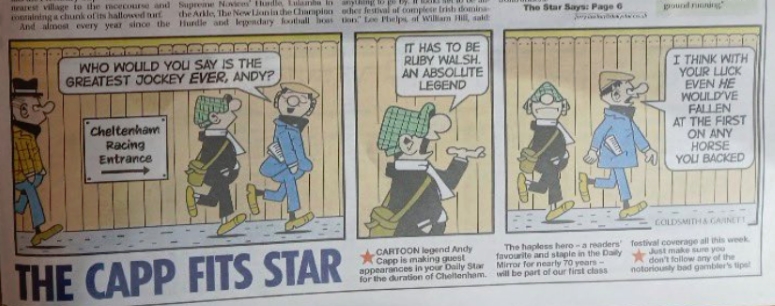 “Andy Capp” is currently appearing in both the Daily Mirror and the Daily Star for the duration of the Cheltenham Races this week.