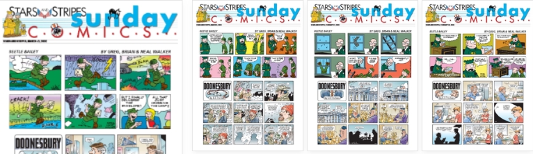 Below we see a couple images from this weekend’s Stars and Stripes comics section: