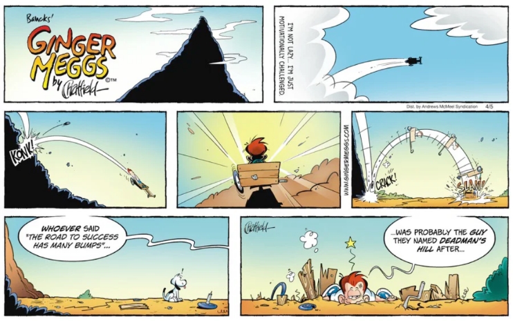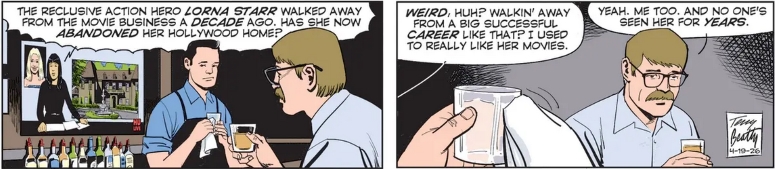 Let’s continue with the news that… Terry Beatty has returned to drawing Rex Morgan, The Daily Bugle has dropped its Comics Section, and Andrews McMeel has stopped syndicating Ginger Meggs to newspapers.