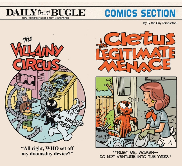 Dozens of Ty’s Daily Bugle Comics Section are posted at his Facebook page. © Marvel Entertainment