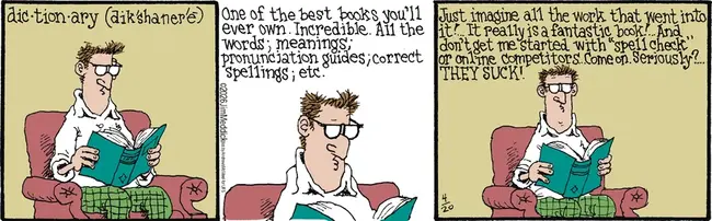 But 99% of the time, I look words up online, mostly to check spelling but also for etymology and such. I’ll keep my dictionaries, but only for sentimental reasons.