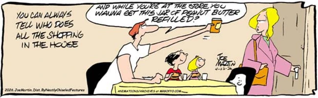 Skip to commentsI’m always pleased when I can start Humpday with a cartoon that reflects something I was just thinking of, and I’ve been amused lately by old retired guys grocery shopping with their wives when it’s obvious that she’s been doing the task for decades and he’s wandering through Wonderland. She’s explaining the different kinds of tomato sauce and he’s being polite but doesn’t seem to be absorbing a whole lot.